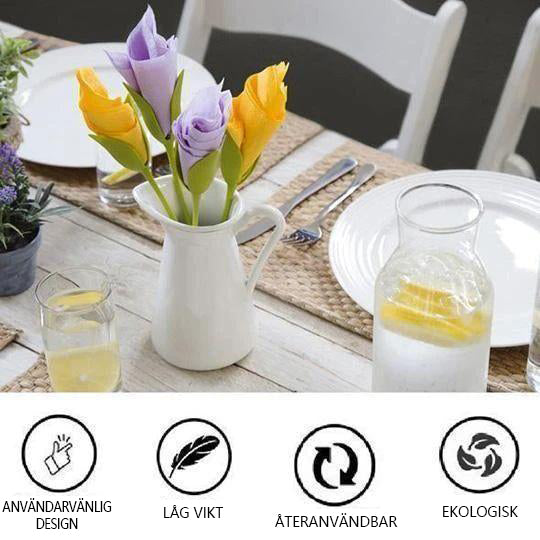 Du bjuder folk på middag. Du lagar mat och dukar elegant. Hur  svårt kan det egentligen vara  att vika en handduk? Efter att ha lekt med papper och skrynkliga servetter   suckar du djupt och lägger bara en rulle hushållspapper på bordet i frustration.  Eller så   kan du ställa upp ett dekorativt bord på ett ögonblick med vår Bloom servetthållare!